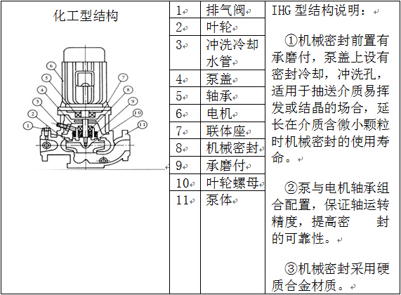 3、IHG型立式化工泵,输送不含固体颗粒具有腐蚀性其粘度类似水的液体。适用于轻纺、石油、化工、冶金、电力、造纸、食品等工业锅炉高温热水,使用温度-20℃—120℃。
